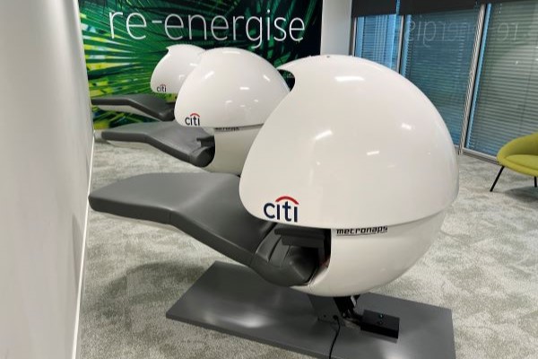 Citibank Live Well rooms, which may include nap pods, offer employees a space to refresh, recharge and re-energize during their day.