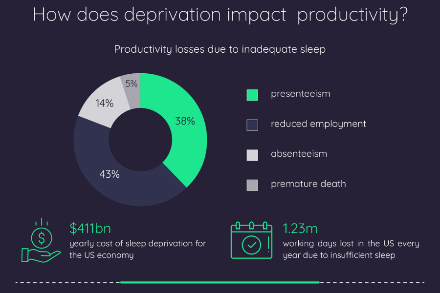 Chronic sleep deprivation comes with serious health consequences. It also has a devastating effect on productivity, estimated to cost businesses billions of dollars each year. Sleep-deprived workers are sick and absent from work more frequently. They get less done while at work, and are significantly more prone to making errors and experiencing accidents. For this reason, sleep health is an issue that companies should address.