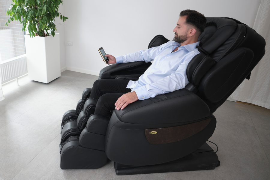 The Luraco Plus massage chair is an effective and durable solution for pain and stress relief in the workplace.